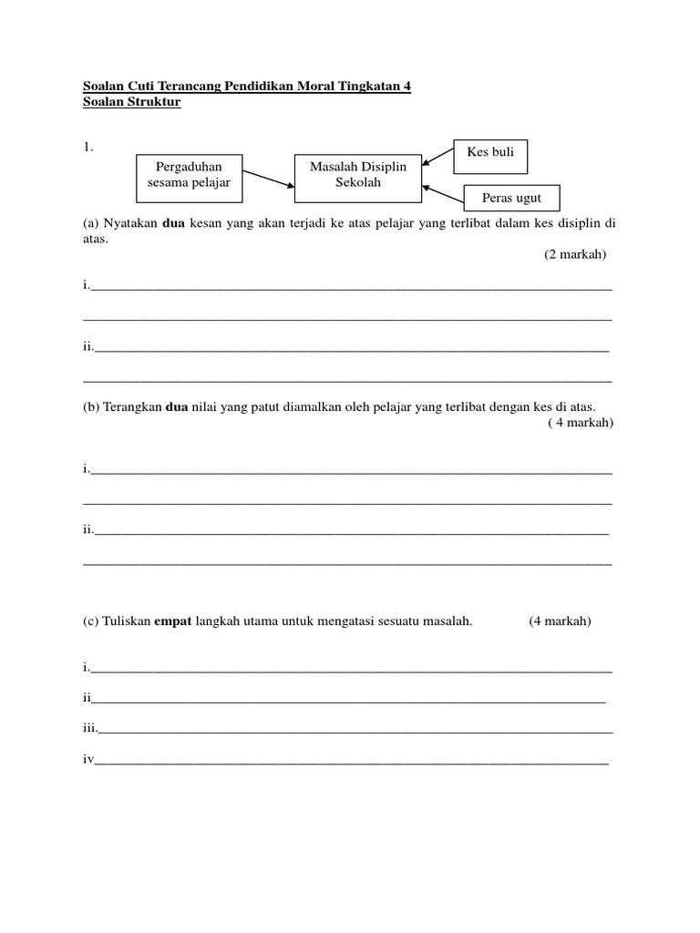 Laman Blog Pendidikan Moral Cadangan Contoh Soalan Untuk Pendidikan Moral Tingkatan 4 Kssm from 1.bp.blogspot.com Modul soalan peperiksaan pendidikan moral spm + skema jawapan. Aplikasi ini merupakan aplikasi augmented reality (ar) bagi buku teks pendidikan moral tingkatan 4 terbitan dewan bahasa dan pustaka. Menyelesaikan karangan 4.0 tip penulisan karangan 4.1 takrif ungkapan menarik 4.2 peribahasa melayu 4.3 senarai peribahasa dalam buku teks tingkatan. Aplikasi ini merupakan aplikasi augmented reality (ar) bagi buku teks pendidikan moral tingkatan 4 terbitan dewan bahasa dan pustaka. Menyayangi dan menghargai alam sekitar unit 17 : Pendidikan islam, pendidikan moral, bahasa malaysia, perniagaan, ekonomi, pendidikan seni visual (psv). Berkomunikasi berasaskan nilai moral 4. 30 januari 2019 mata pelajaran :