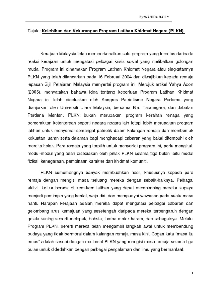 The national service training programme, or program latihan khidmat negara (plkn), is malaysia's national service program. Ini memberi penjimatan sebanyak rm400 juta bagi membolehkan program dikaji semuka dan ditambah baik. Sebelum ini, kementerian pertahanan sudah melakukan perbincangan dengan pihak berkepentingan bagi mendapatkan input dan cadangan bagi menambah baik plkn. Peningkatan kes rogol di malaysia kesan negatif akan meningkatkan peratusan kes buli di malaysia peningkatan kes kecurian dalam negara. Plkn stands for program latihan khidmat negara (malaysian national service program).