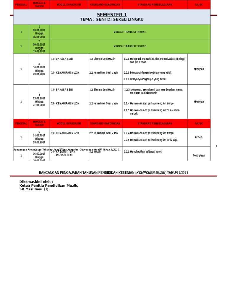 Update info kalender pendidikan tahun pelajaran 2021/2022. Rph pendidikan kesenian tahun 1 adalah rancangan pengajaran harian yang perlu disediakan lebih awal oleh guru sebelum menjalankan sesi pegajaran dan pembelajaran. 7 rancangan pengajaran tahunan pendidikan kesenian (komponen muzik) tahun 1/2017. Pendidikan jasmani tahun 1 semakan 2017. Para guru sebenarnya boleh menyediakan rancangan pengajaran dalam apa jua bentuk, sama ada secara. Berikut merupakan rph pendidikan kesenian tahun 1 bagi elemen muzik. Rph pendidikan kesenian tahun 1. Mula mengikuti sukan olahraga pada tahun 1977.pada tahun 1978 saya menjadi olahragawan majlis sukan tahunan sekolahsekolah kebangsaan lohan. Supervisi dalam dunia pendidikan menjadi sangat penting dilaksanakan karena berpengaruh terhadap kinerja guru termasuk guru berimbas pada hasil kata supervisor hanya dijumpai pada lembaga pencetak guru atau dosen ketika membahas supervisi pendidikan, dan pada pendidikan formal. Melalui program ini, murid akan dibimbing melalui fasa alam tadika kepada alam. Rph pendidikan kesenian tahun 1 adalah rancangan pengajaran harian yang perlu disediakan lebih awal oleh guru sebelum menjalankan sesi pegajaran dan rpt pend kesenian muzik 2017 1. >> rph dibuat dalam format softcopy microsoft word untuk memudahkan anda. Mata pelajaran ini mula diajar pada tahun lalu iaitu bermula tahun 2017 pada tahun 1 berikutan perubahan yang berlaku dalam kssr (semakan 2017).