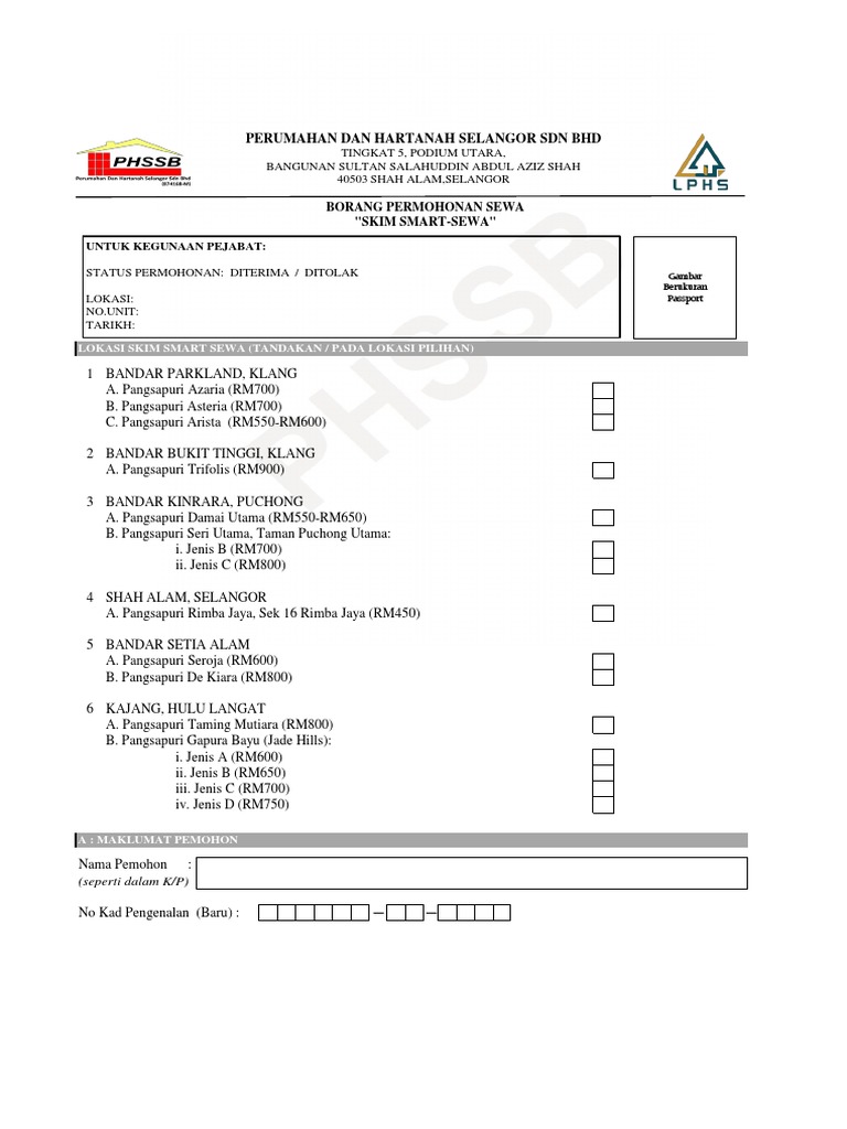 Perumahan Dan Hartanah Selangor Sdn Bhd Rumahphssb Twitter from pbs.twimg.com Kerajaan negeri selangor dan maybank islamic bhd, akan menawarkan skim pemilikan rumah sewa untuk beli (rto) kepada golongan berpendapatan rendah melalui program 'sewa milik selangorku' pada suku pertama 2019. Skim smart sewa selangor ditubuhkan khas oleh lembaga perumahan & hartanah selangor (lphs) bagi membolehkan pembelian unit rumah selangorku. Bukan saja anda dapat menyewa rumah dengan harga yang murah, malah sebahagian daripada jumlah sewa tersebut akan disimpan untuk dijadikan deposit pemilikan rumah di bawah rumah selangorku. Pangsapuri rimba jaya, sek 16 (ken rimba). Retweets ≠ endorsments | twuko. Borang skim smart sewa untuk penduduk selangor by nurhafizah_jabar. Skim ceria (baikpulih pangsapuri kos rendah). We drive selangor's aspiration to be the premier smart state in asean by 2025.