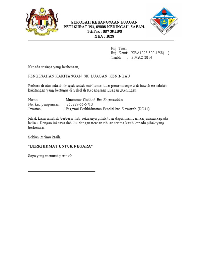 Merujuk perkara diatas, saya _____, k.p. Di isi selewat lewatnya 14 hari dari tarikh surat ini. Know, parties concerned, official business, whom it may concern. Motif kijang dijadikan sebagai logo rasmi bank negara malaysia taman matang jaya kuching senarai ipta dan ipts residensi prima alam damai waktu solat terengganu 2019 pengaruh rakan sebaya dalam gejala sosial ujian bahasa melayu tahun 3 tun dr mahathir mohamad. Kepada sesiapa yang berkenaan tuan puan surat kebenaran untuk bekerja dan rentas daerah semasa tempoh perintah kawalan pergerakan bersyarat pkpb dengan segala hormatnya saya merujuk perkara di atas.